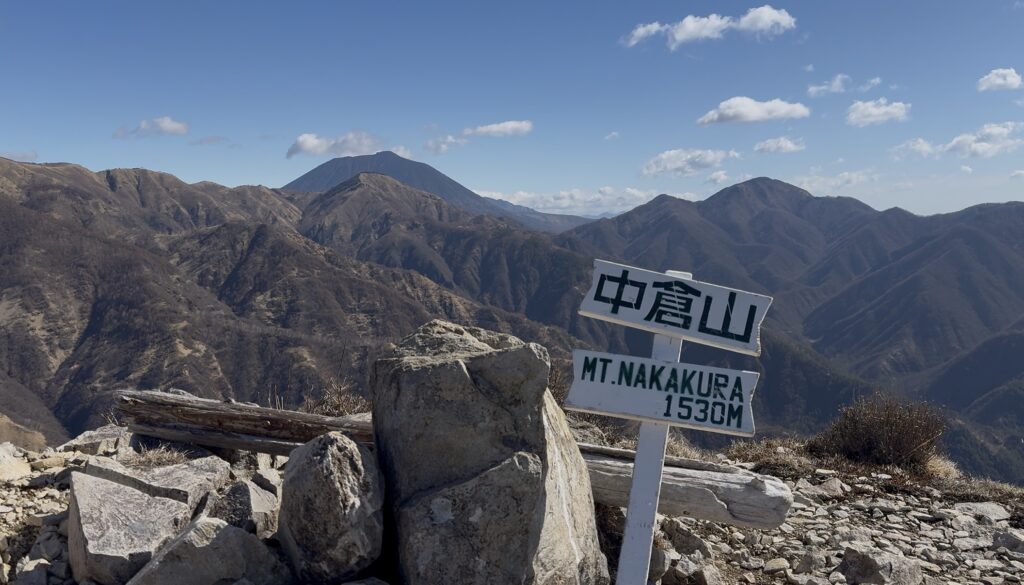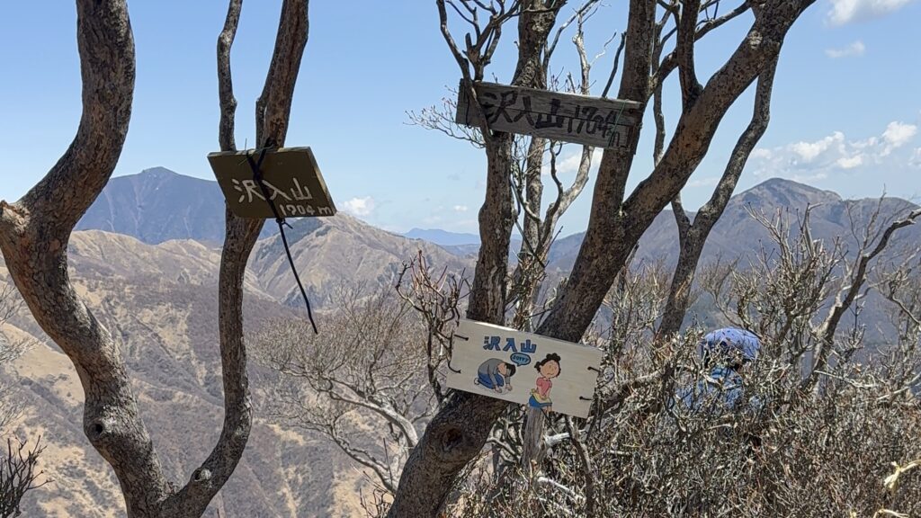沢入山の山頂は標高1,548mで、 中倉山から約30〜40分ほどで到着します。 山頂は広くはありませんが、 足尾の山並みを一望できる展望ポイントとして人気があります。
